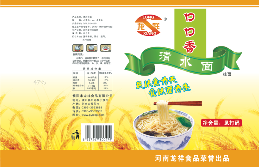 濮陽市龍祥食品有限公司位于河南省濮陽縣戶部寨鎮(zhèn)小濮州,始建于1994年,前期投資200萬元,經(jīng)過幾年的努力,大力開發(fā)市場(chǎng),由于市場(chǎng)的需求量急劇上升,出現(xiàn)供不應(yīng)求,于2004年擴(kuò)建,建成一座新型的現(xiàn)代化面粉加工企業(yè),并擁有全國先進(jìn)全自動(dòng)生產(chǎn)設(shè)備一套,產(chǎn)量由以前的100噸/天,提高到現(xiàn)在400噸/天。 2012年再次擴(kuò)大規(guī)模申請(qǐng)為濮陽市龍祥食品有限公司,注冊(cè)資金500萬元。2012年又投資800萬元新建掛面生產(chǎn)線一條,日產(chǎn)掛面50噸。龍祥食品有限公司現(xiàn)有職工120余人,總工程師1人,專業(yè)技術(shù)人員10人,經(jīng)濟(jì)師1人,會(huì)計(jì)師1人,銷售人員2人,優(yōu)秀專業(yè)人員20余人。  龍祥公司自創(chuàng)建以來,社會(huì)效益十分可觀。公司一直以“今天的質(zhì)量,明天的市場(chǎng)”為信念,“一切為了客戶需求,竭誠追求完美品質(zhì)”為企業(yè)宗旨,走專業(yè)化經(jīng)營和職業(yè)化管理的路子。